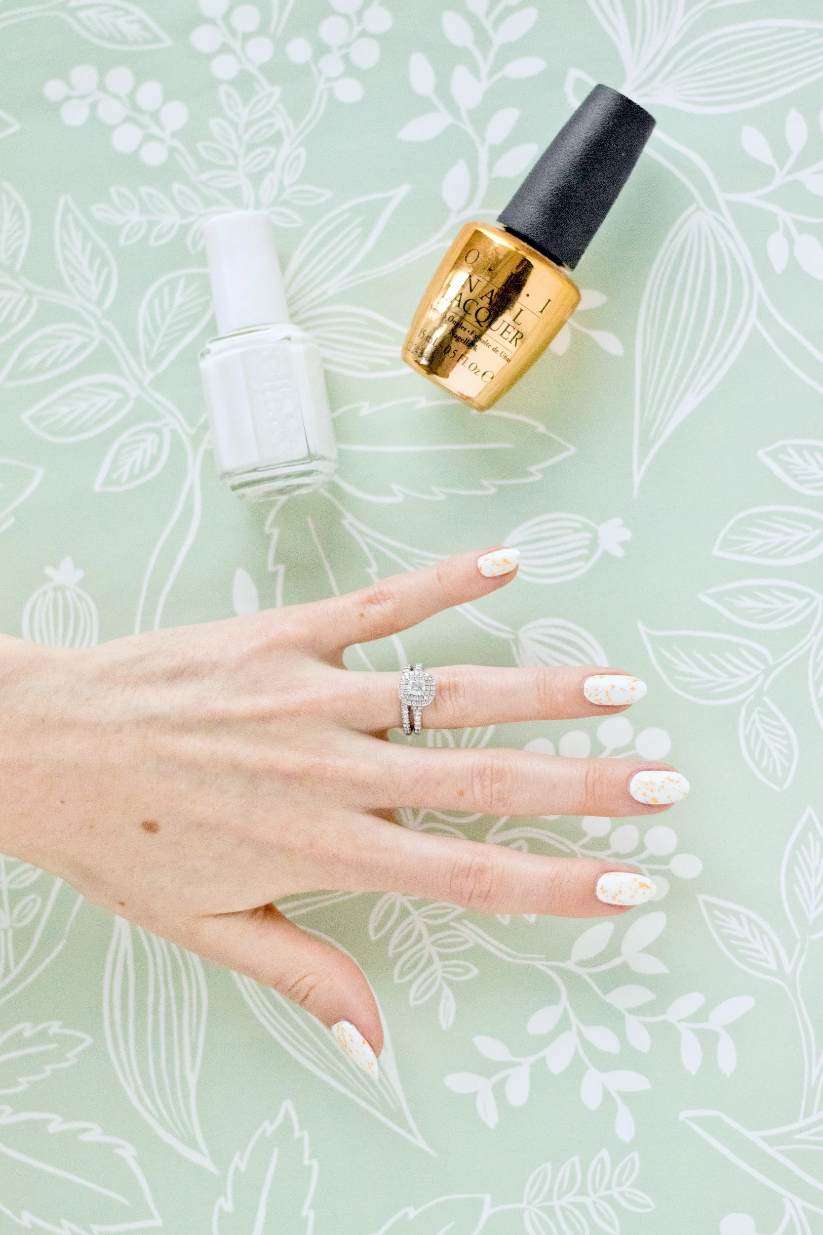 This week I went for a fun gold flake mani, with Essie's Blanc, and OPI's The Man With the Golden Gun 18 carat gold top coat. Yes, it's real gold! This particular top coat was a limited edition release in celebration of Skyfall. I've had the bottle for a few years and it's still going strong!