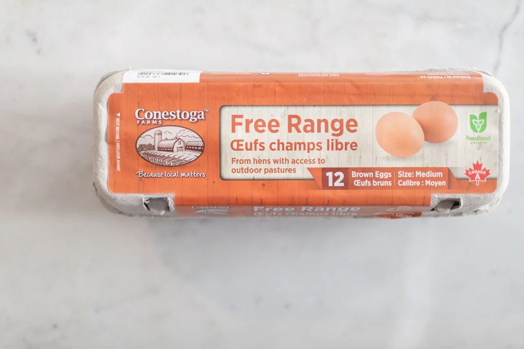 This dish is made using Conestoga Farms Free Range Eggs, which are laid by Ontario-raised laying hens that live on open concept farms, with access to outdoor pastures. They can freely forage, scratch, peck, perch and lay their eggs in nest boxes!