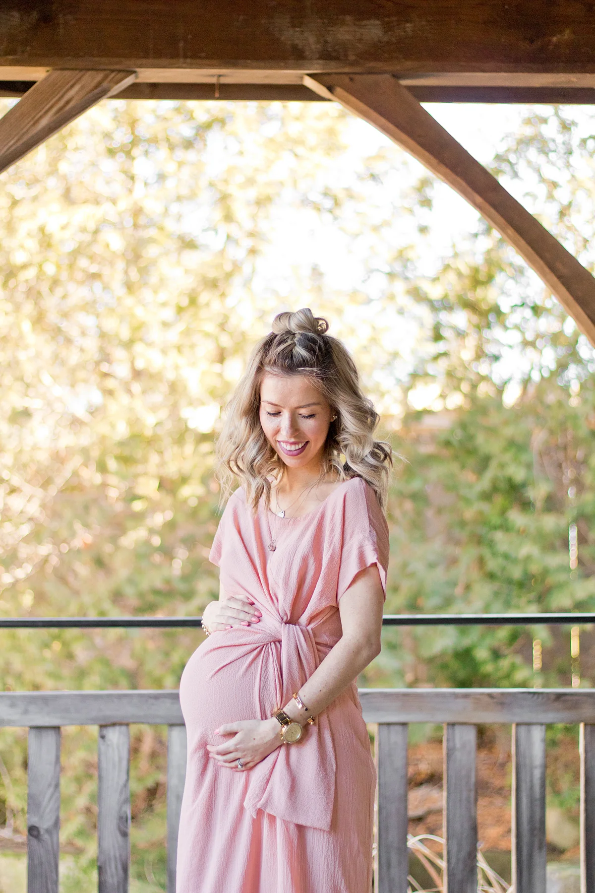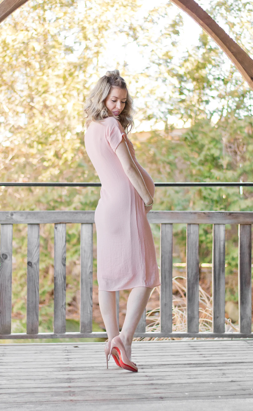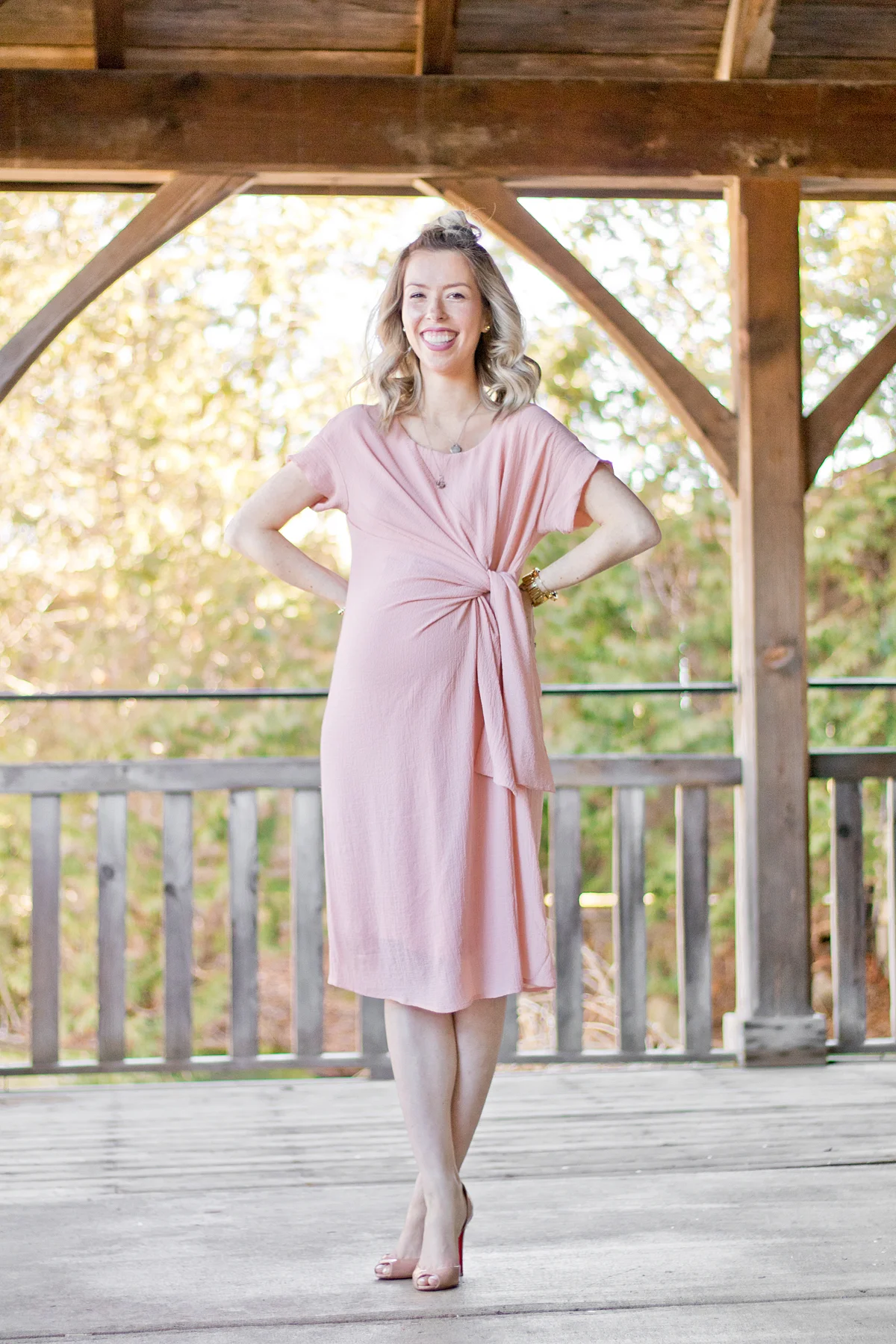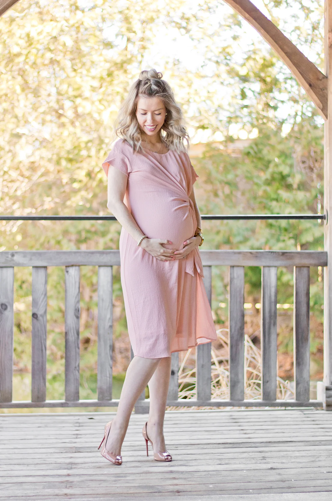 This dress was an amazing find because I live for pink, the tie above the belly is just way too cute, and the fabric is hella comfortable -- I'm talking all kinds of stretch. I've linked it here for your shopping pleasure.